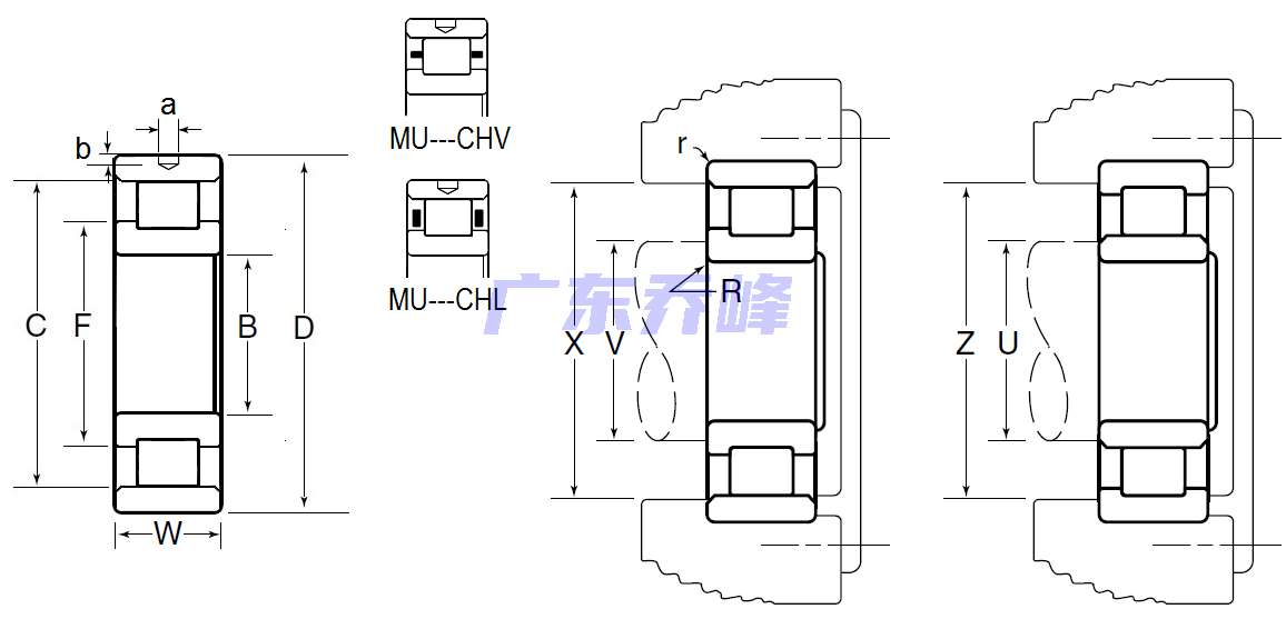M:NTN BOWER產(chǎn)品,標準公制尺寸系列,U:內(nèi)圈雙擋邊