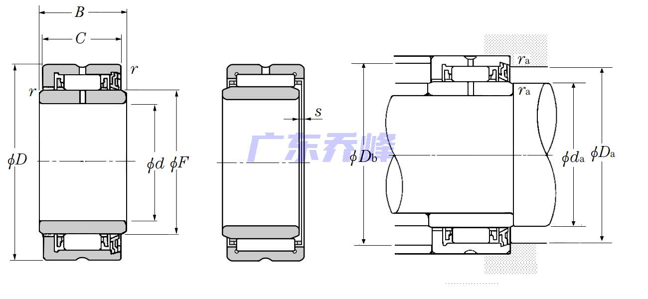 機加工滾針軸承帶內圈 - NA49系列,單面密封 - 尺寸