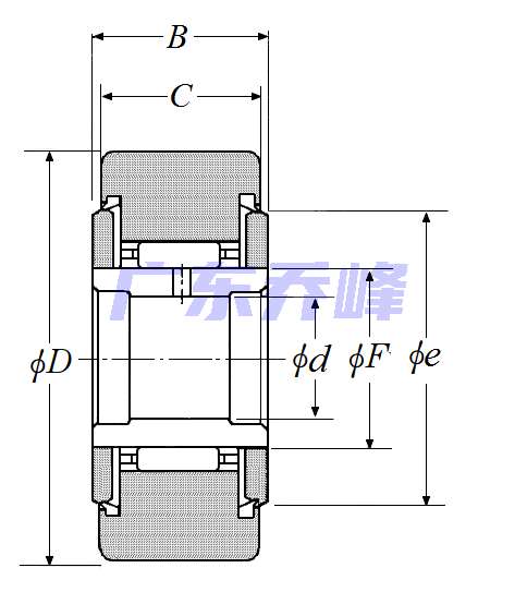 | 擋圈型滾輪軸承 - 帶內圈,雙面密封,NATR型,圓柱內徑 - 尺寸 | |