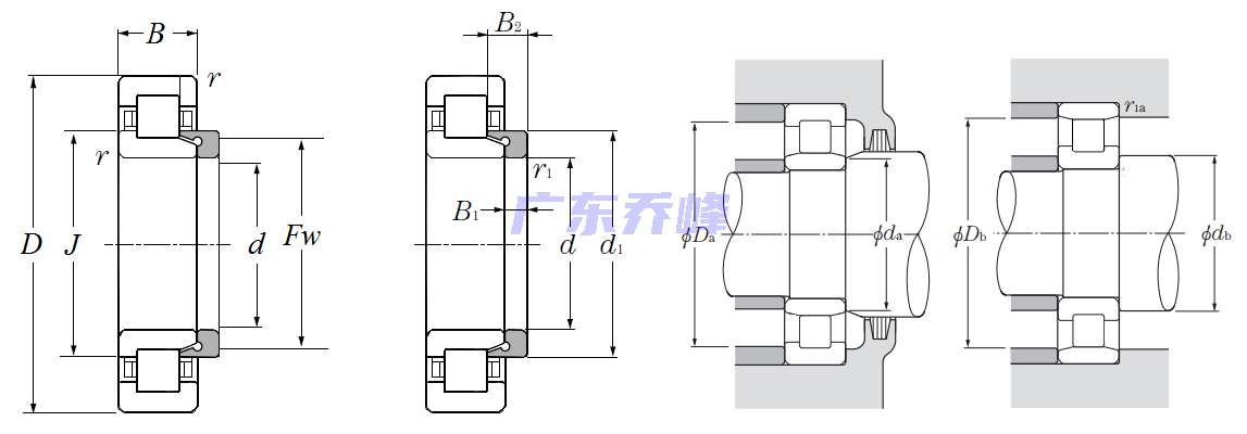 NH:外圈雙擋邊,內(nèi)圈單擋邊,另一側(cè)帶L型斜擋圈
