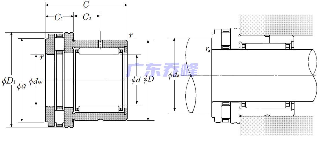 | 滾針和推力圓柱滾子組合軸承 - 開(kāi)式 - 尺寸 | |