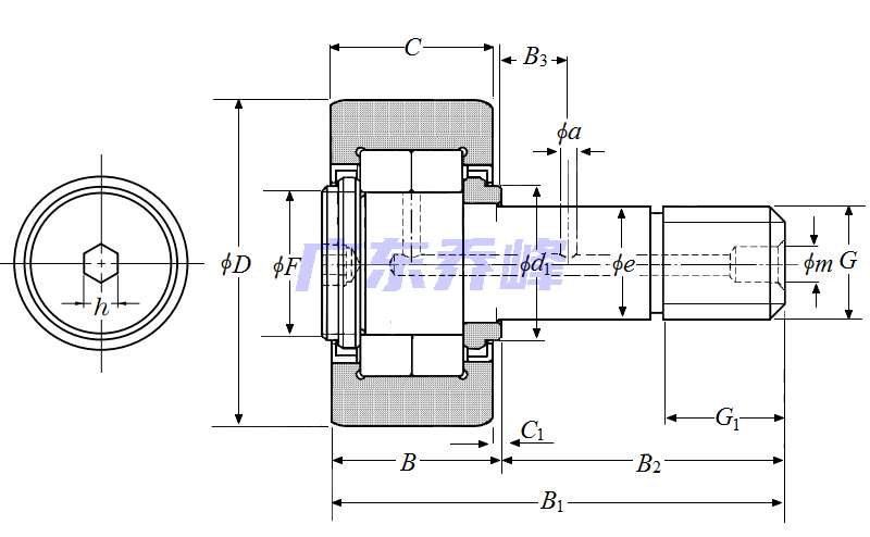 | 凸輪從動(dòng)螺柱式滾輪軸承 - 圓柱內(nèi)徑,NUKR..H型 - 尺寸 | |