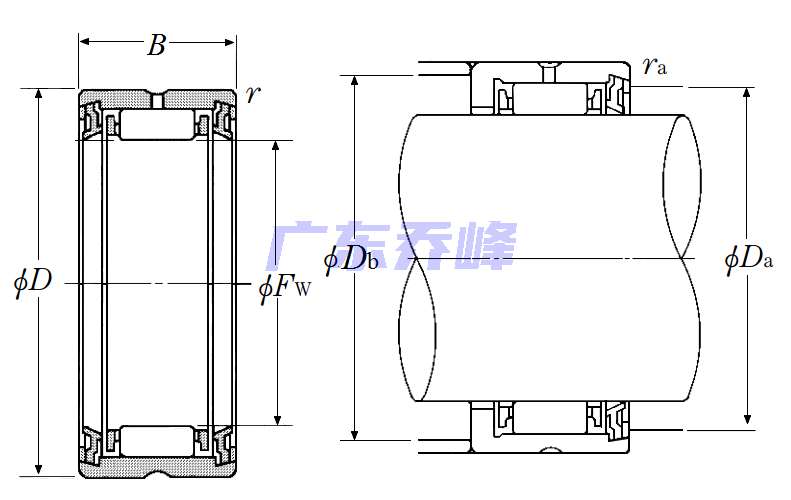 | 機(jī)加工滾針軸承不帶內(nèi)圈 - RNA49系列,雙面密封 - 尺寸 | |