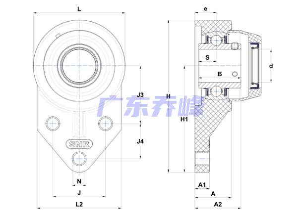 | 三螺栓法蘭式軸承座單元,熱塑性外殼,帶緊定螺釘,SUCFBL型 - 尺寸 | |