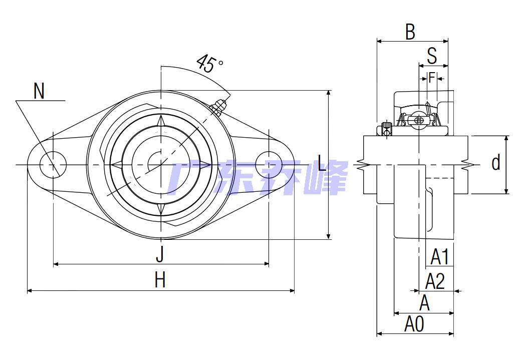 | 類型 | 雙螺栓菱形法蘭式軸承座單元 |