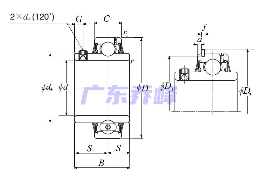 帶緊定螺釘的外球面軸承,寬外圈 - 圓柱內徑,帶止動環 - 尺寸