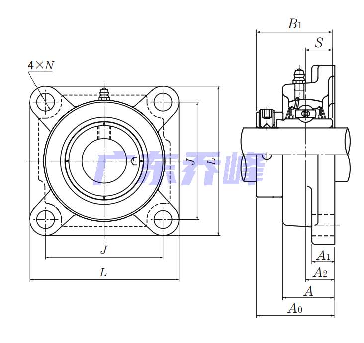 | 類型 | 四螺栓方形法蘭式軸承座 |